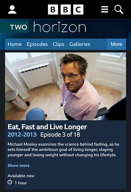 本期所讲肥胖是现代人类最大的敌人。那么节食是否会带来健康与长寿,这一直是人们迫切希望得到答案的问题。《BBC地平线:节食与长寿》从几个简单的例子来验证,表达出科学合理的节食对健康有益的观点。感兴趣的朋友可以下载来看看。